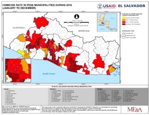 The eight maps ME&A is submitting were developed under the USAID-funded Monitoring, Evaluation and Learning Project in El Salvador for inclusion in this year’s conference. GIS Specialist Ricky Perez developed them in San Salvador for the USAID El Salvador Mission. The eight maps include two on biodiversity assessment; three on the nation’s homicide rate, which is one of the highest in the world; and three on the number of Salvadoran returnees from Mexico for the years 2016 and 2018.